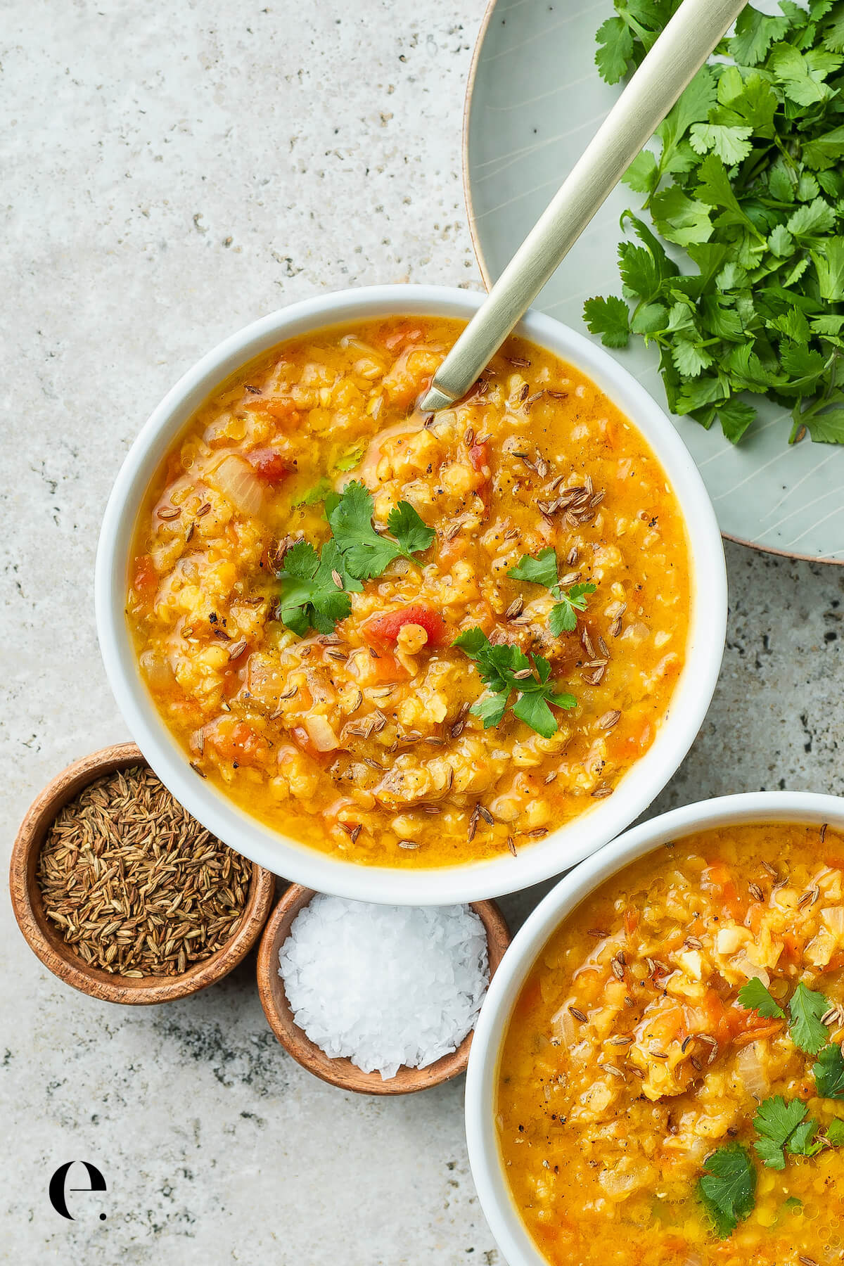 Fragrant with onion, carrot, and cumin, and brightened with a squeeze of lemon. Golden, hearty, and sunshiney with flavor. Parve. Serves 2 - 3/